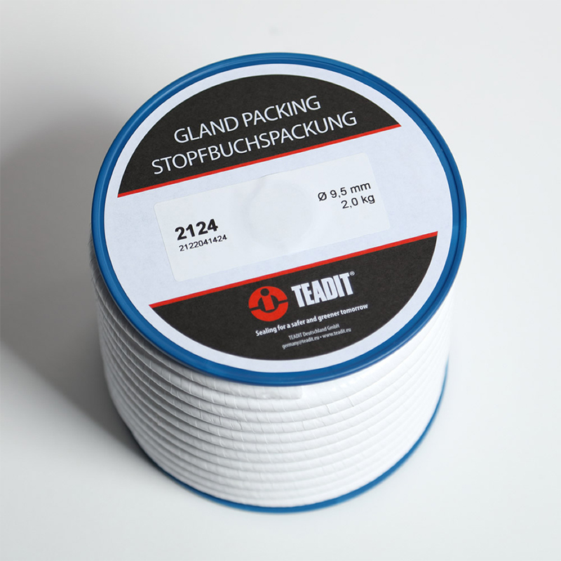 TEADIT style 2124由100%純PTFE帶編織而成,為了進一步提高氣密性,編織成的盤根被緊緊地包裹在另外一層PTFE中。