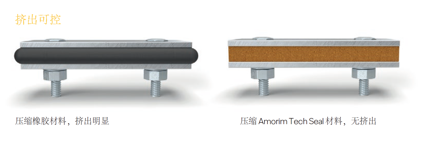 如果選擇硬度合適的軟木橡膠材料,則無需考慮擠出問題。軟木橡膠的可壓縮性可代替不可壓縮的模制橡膠、O形圈等。
