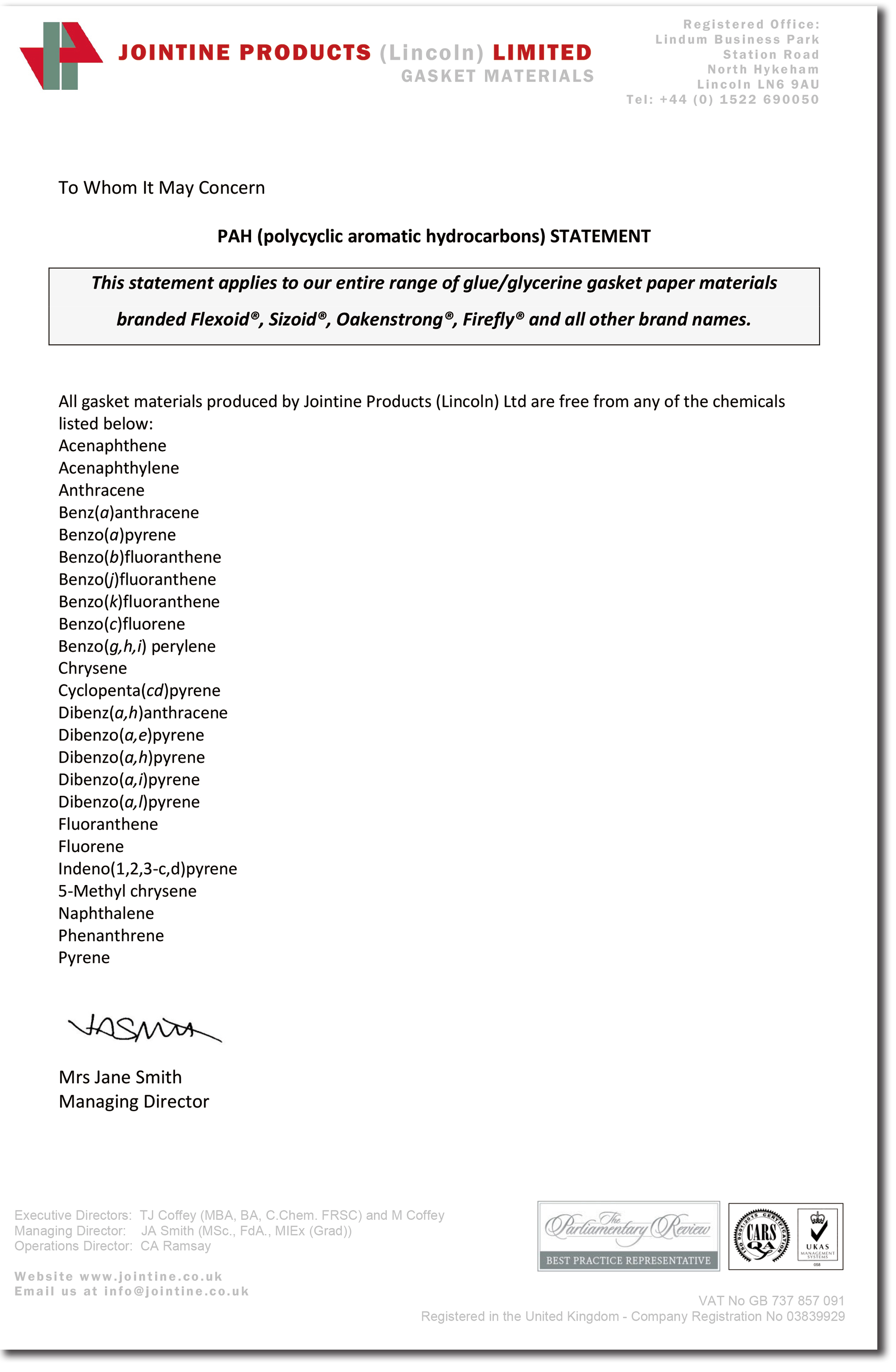 英國Flexoid福來德發(fā)布PBT,PAH等環(huán)保聲明