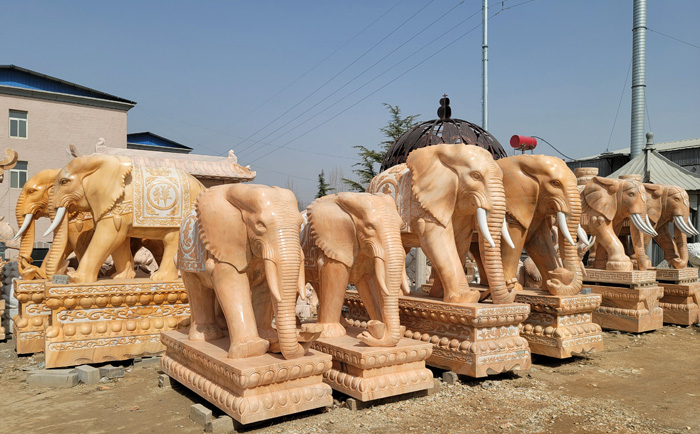大象是一種高大威猛的動物,但是它的性情比較溫和,所以也深受人們的喜愛,石雕大象也代表著強大、和平、吉祥、幸福美滿的寓意,石雕大象具有聚財、招財、守財的作用,所以很多商鋪、酒店門口都會擺放一對石雕大象,除此之外,石雕大象還有裝飾作用,擺在門口顯得很有氣勢。